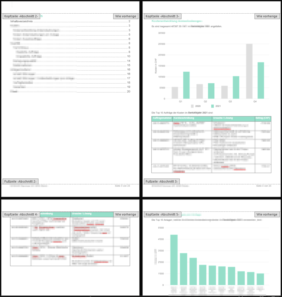 Dann ist die Word-Ausgabe typischerweise das Format der Wahl. Leider fällt dabei schnell auf, dass der Word-Export aus Jasperreports einige Mängel aufweist: Die Inhalte des Reports werden in verschachtelten Tabellen ausgerichtet, um eine exakte Positionierung zu gewährleisten. Kopf- und Fußzeilen des Jasperreports werden zu einfachen Tabellenzeilen und Seitenzahlen in statischen Text umgewandelt. Eine solche Word-Ausgabe ist eigentlich zu gar nicht mehr brauchbar und erfüllt in keiner Weise die ursprünglichen Anforderungen.